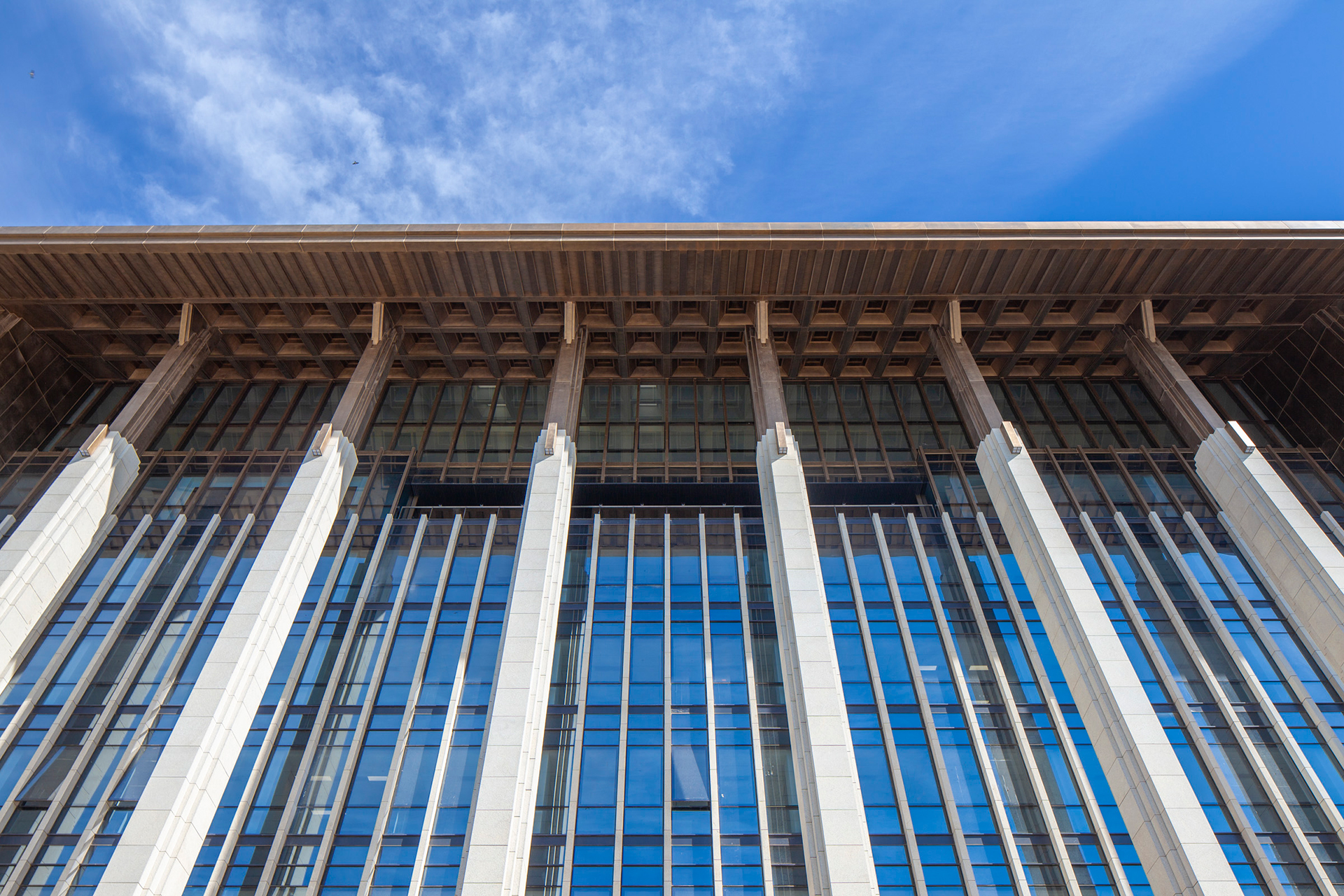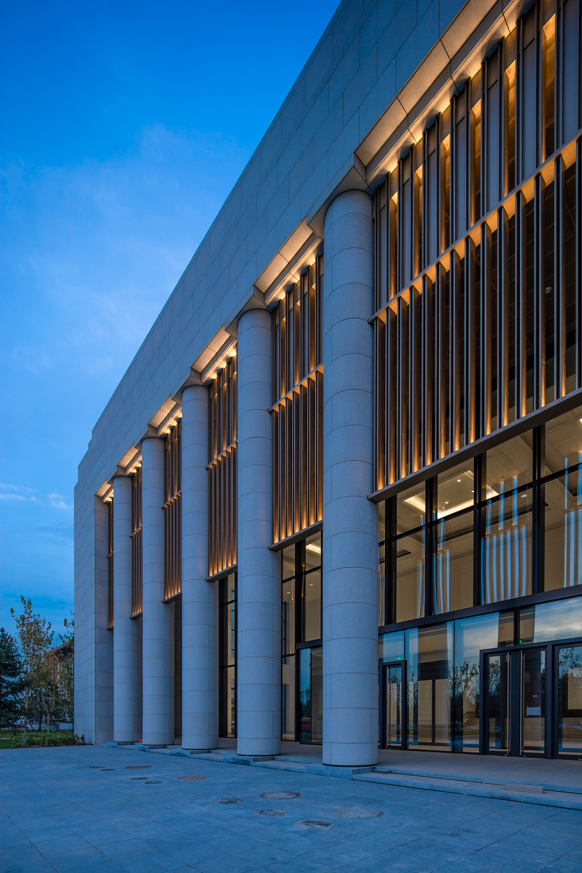 建筑形象傳承了中國(guó)傳統(tǒng)建筑屋頂?shù)脑煨停⑦M(jìn)行了創(chuàng)新。建筑屋面仍然保持了下凹曲面的形式,但省略了傳統(tǒng)建筑繁復(fù)的細(xì)節(jié),體現(xiàn)了現(xiàn)代建筑的基本特征和時(shí)代精神。