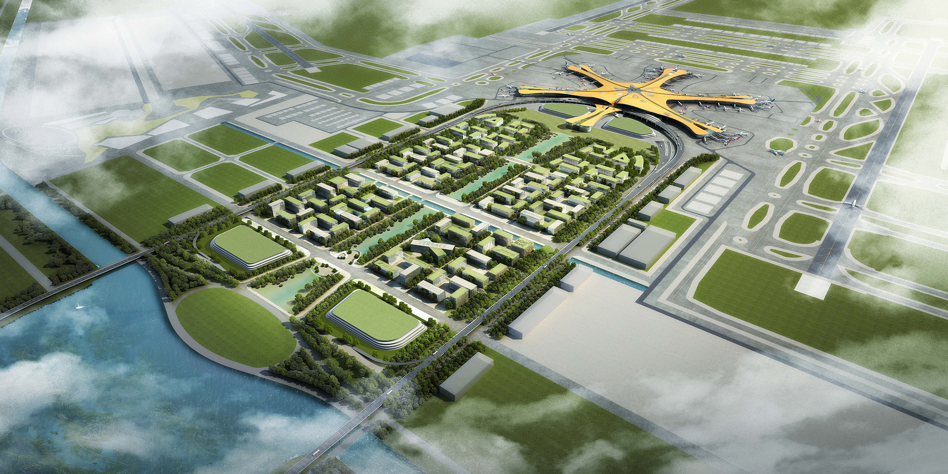 規(guī)劃將近遠(yuǎn)期相結(jié)合,提高機場區(qū)域土地的利用效率,使機場與城市有機結(jié)合,保障機場、鐵路的人流、貨流運輸能力和安全,做到系統(tǒng)清晰、運行有序、邊界明確、合理分區(qū)。 規(guī)劃從整體城市空間角度出發(fā),對機場航站樓前核心區(qū)的交通流線、開放空間、整體空間形態(tài)、街區(qū)模式等進(jìn)行研究,并對航站樓前的中央景觀帶、地下空間以及主要功能區(qū)展開專題研究。
