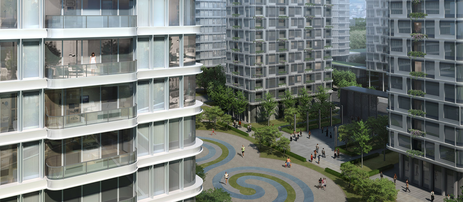 利用立面的風(fēng)格變化,將整個(gè)園區(qū)分為三種組團(tuán)類型。 中心綠地廣場(chǎng)采用中國(guó)傳統(tǒng)的冰嬉圖意向,在院落的核心空間打造適應(yīng)多種運(yùn)動(dòng)的共享空間。每個(gè)地塊的東西兩側(cè)建筑首層及二層局部架空,將城市空間引入本項(xiàng)目的公共空間,形成線性開放空間,為城市退讓出一片活力共享空間。建筑形體做了圓角處理,改善了方正形體帶來(lái)的拘謹(jǐn),更加自由靈動(dòng),對(duì)城市空間更友好。立面多采用淺色石材、深灰色金屬以及具有紋路的彩釉玻璃等材質(zhì)形成雅致的黑白灰色調(diào),凸顯出中國(guó)傳統(tǒng)的書畫意境。屋頂為開放公共空間,通過種植景觀豐富活動(dòng)空間,改善局部氣候,為城市提供綠色生態(tài)的第五立面,同時(shí)屋頂設(shè)置太陽(yáng)能板實(shí)現(xiàn)清潔能源的利用。本項(xiàng)目戶型規(guī)整,南北通透,動(dòng)靜分區(qū),功能齊備。獨(dú)立電梯入戶,增強(qiáng)儀式感。通過裝配式鋼結(jié)構(gòu)實(shí)現(xiàn)戶內(nèi)無(wú)柱或少柱的靈活空間。增設(shè)無(wú)障礙設(shè)施的條件預(yù)留,打造全齡化住宅。以“社區(qū)健康化”為設(shè)計(jì)理念,以人的全周期需求為導(dǎo)向,依托大數(shù)據(jù),打造可進(jìn)化、有感知的、交互式開放智慧社區(qū)。