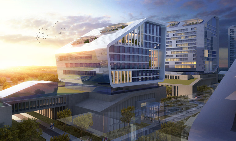 貴陽華融金融中心位于貴陽城市核心區(qū)紫林庵片區(qū)。建筑方案和初步設(shè)計由Aedas完成,我院負責結(jié)構(gòu)方案和初步設(shè)計并完成超限審查。