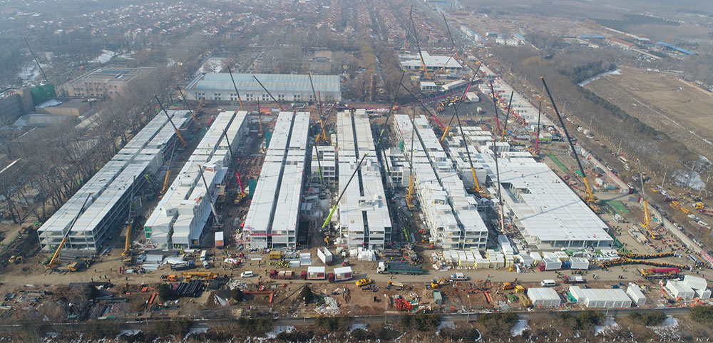 在小湯山項(xiàng)目工程現(xiàn)場(chǎng),3層的集裝箱建筑正在緊鑼密鼓地建設(shè)之中,能夠滿足所有床位的需求。包括食堂、換熱站、污水處理站、洗消間等在內(nèi)的附屬設(shè)施,將為醫(yī)院提供完善的配套服務(wù)。B區(qū)康復(fù)中心改建項(xiàng)目已基本完成,將提供先進(jìn)的負(fù)壓隔離病房。