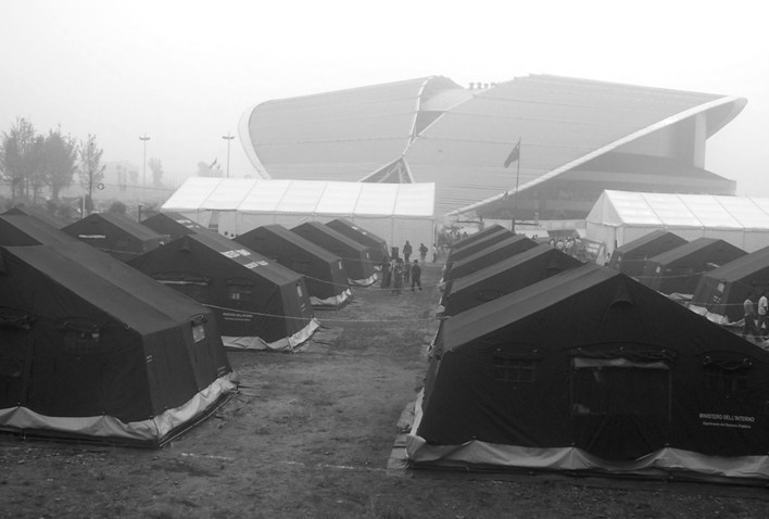 2008年5月12日中國(guó)汶川發(fā)生特大地震,無(wú)數(shù)建筑倒塌,滿目瘡痍,幾十萬(wàn)人無(wú)家可歸。位于四川省綿陽(yáng)市的九洲體育館在大震中屹立不倒,成為受災(zāi)群眾的臨時(shí)安置場(chǎng)所,在隨后上萬(wàn)次余震中,體育館主體結(jié)構(gòu)完好,先后守護(hù)受災(zāi)群眾10萬(wàn)余人,被災(zāi)民譽(yù)為大震中的“生命綠洲”。