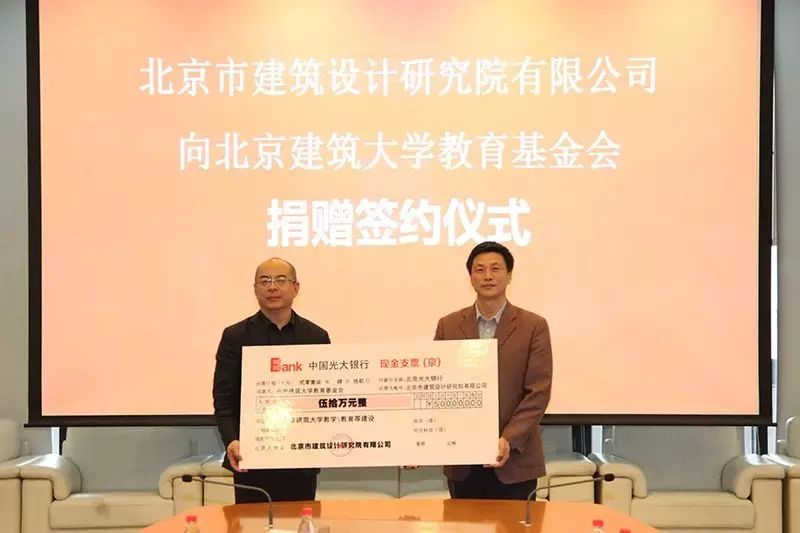 2017年4月19日,北京市建筑設(shè)計(jì)研究院股份有限公司(BIAD)向北京建筑大學(xué)教育基金會(huì)捐贈(zèng)簽約儀式在BIAD簽約大廳成功舉行。