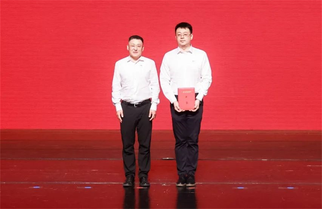 公司領(lǐng)導向受表彰的先進集體和先進個人代表頒發(fā)獎杯、獎章和證書