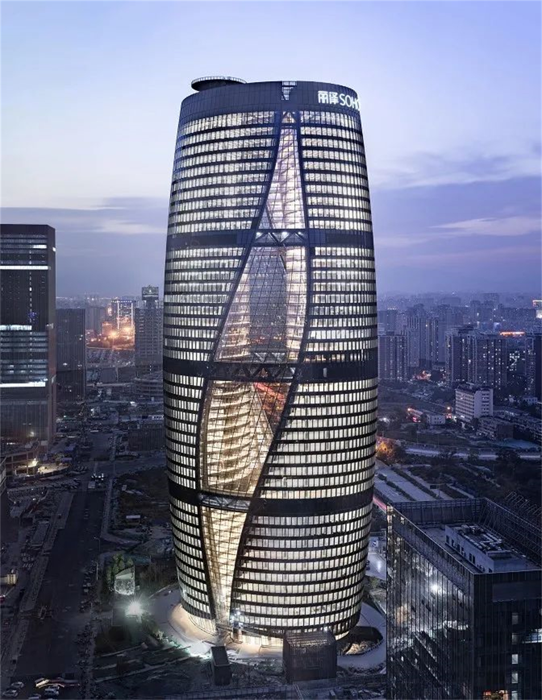 本成果已成功應(yīng)用于麗澤 SOHO(世界最高中庭)、騰訊北京總部、雁棲湖國際會展中心、北京保利國際廣場、中國國際絲路中心大廈(建筑高度498 m)、昆明恒隆廣場、武漢泰康在線總部大廈(三塔連體)等數(shù)十項標(biāo)志性建筑,取得了顯著的經(jīng)濟效益,研究成果對復(fù)雜高層建筑安全性提升和技術(shù)進(jìn)步具有重大的引領(lǐng)和推動作用。