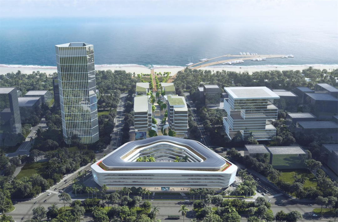 項目位于海口市江東新區(qū),總建筑面積約9萬平方米,采用全專業(yè)BIM正向設(shè)計,貫穿初步設(shè)計、施工圖設(shè)計全過程。其中復(fù)雜形態(tài)的部分及幕墻系統(tǒng)基于Rhino三維建模,利用參數(shù)化技術(shù),將設(shè)計、技術(shù)需求進(jìn)行參數(shù)調(diào)試以達(dá)到設(shè)計穩(wěn)定。各系統(tǒng)基于Revit在同一中心模型協(xié)同工作,完成實時協(xié)同、正向出圖。通過擴(kuò)充族庫、優(yōu)化模板,使最終生成的二維施工圖均滿足建筑制圖規(guī)范性及深度。同時,全專業(yè)三維模型進(jìn)行碰撞檢查,優(yōu)化圖紙質(zhì)量;機(jī)電管綜優(yōu)化排布,精細(xì)化控制凈高,滿足空間使用及空間高效性。