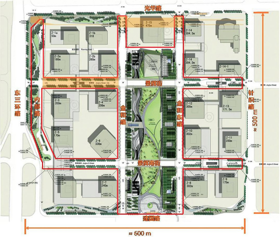北京CBD核心區(qū)位于朝陽(yáng)區(qū)國(guó)貿(mào)橋東側(cè),規(guī)劃用地30公頃總建筑面積410萬(wàn)平方米,最高建筑高度500米。CBD 核心區(qū)基礎(chǔ)設(shè)施工程是集交通、市政、景觀以及綜合防災(zāi)功能為一體的地下空間建設(shè)項(xiàng)目。主體位于中央公共綠地以及道路下方總建筑面積約50萬(wàn)平方米,將為區(qū)域提供景觀性的地上空間、交通網(wǎng)絡(luò)和市政基礎(chǔ)設(shè)施。