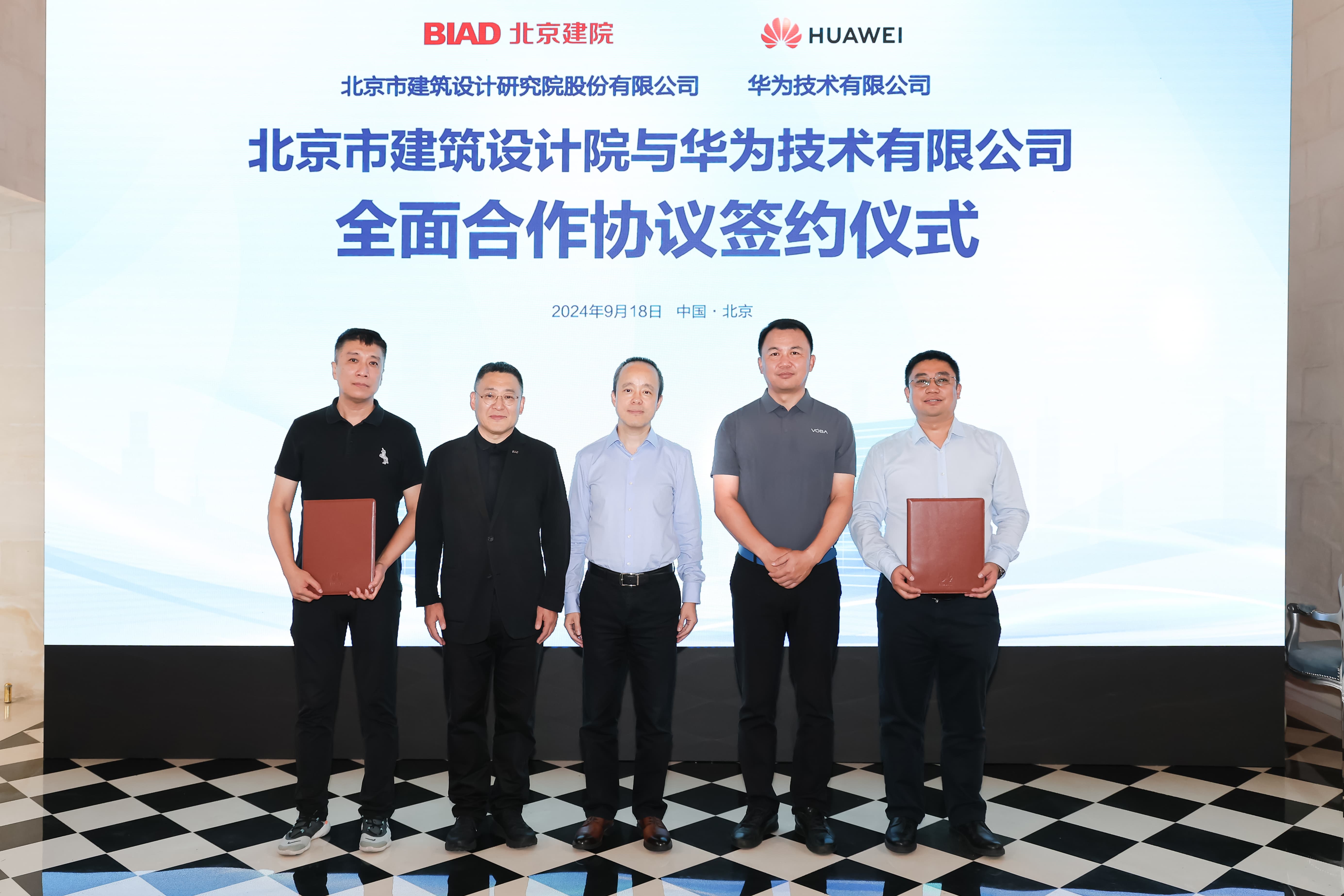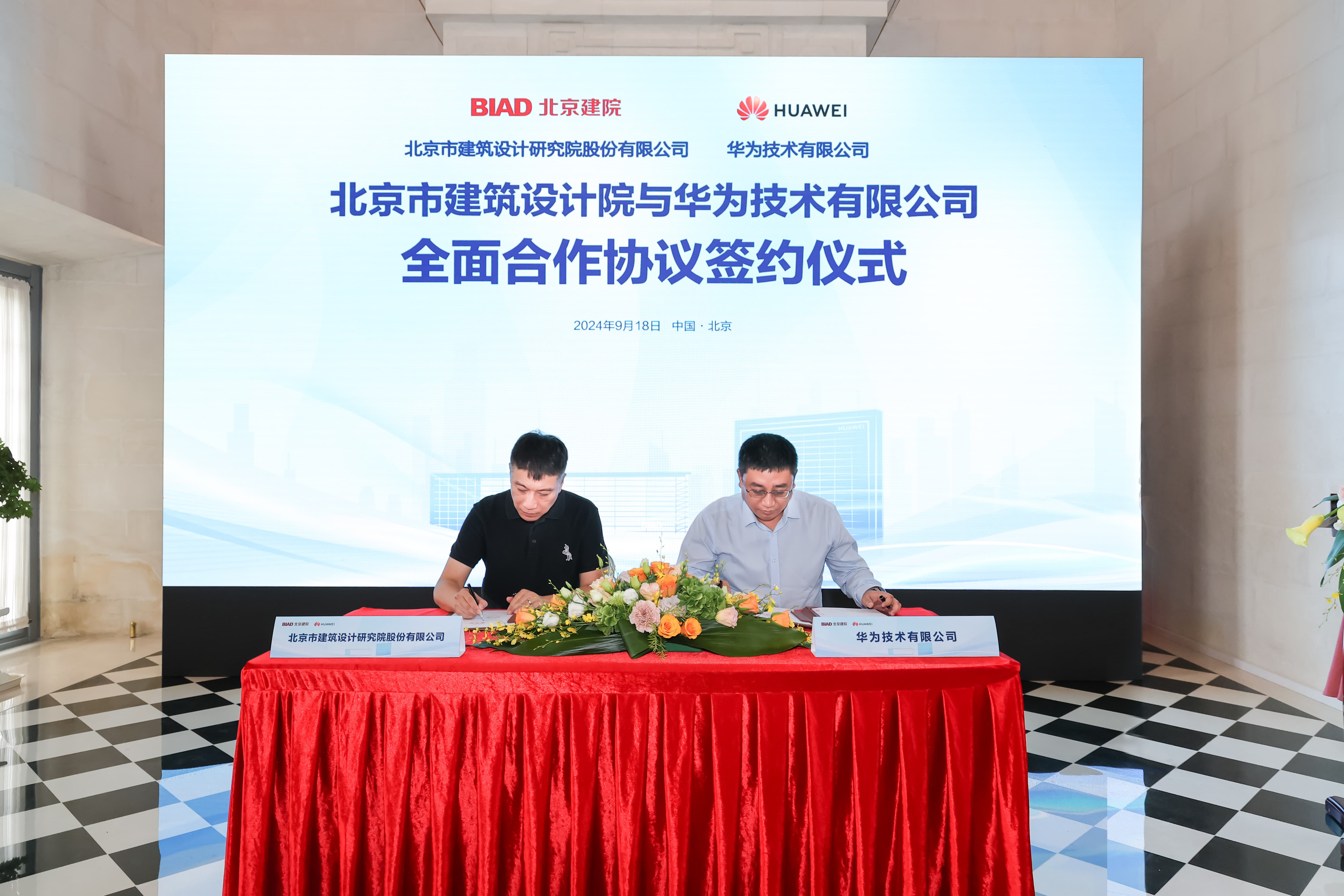 2024年9月18日,北京市建筑設(shè)計(jì)研究院股份有限公司、華為技術(shù)有限公司全面合作協(xié)議簽約儀式在華為北京會(huì)展中心隆重舉行。北京建院黨委書記、董事長(zhǎng)、總建筑師徐全勝,華為北京政企業(yè)務(wù)部部長(zhǎng)宋保民,北京藍(lán)海華業(yè)科技股份有限公司董事長(zhǎng)逯金重出席簽約儀式。