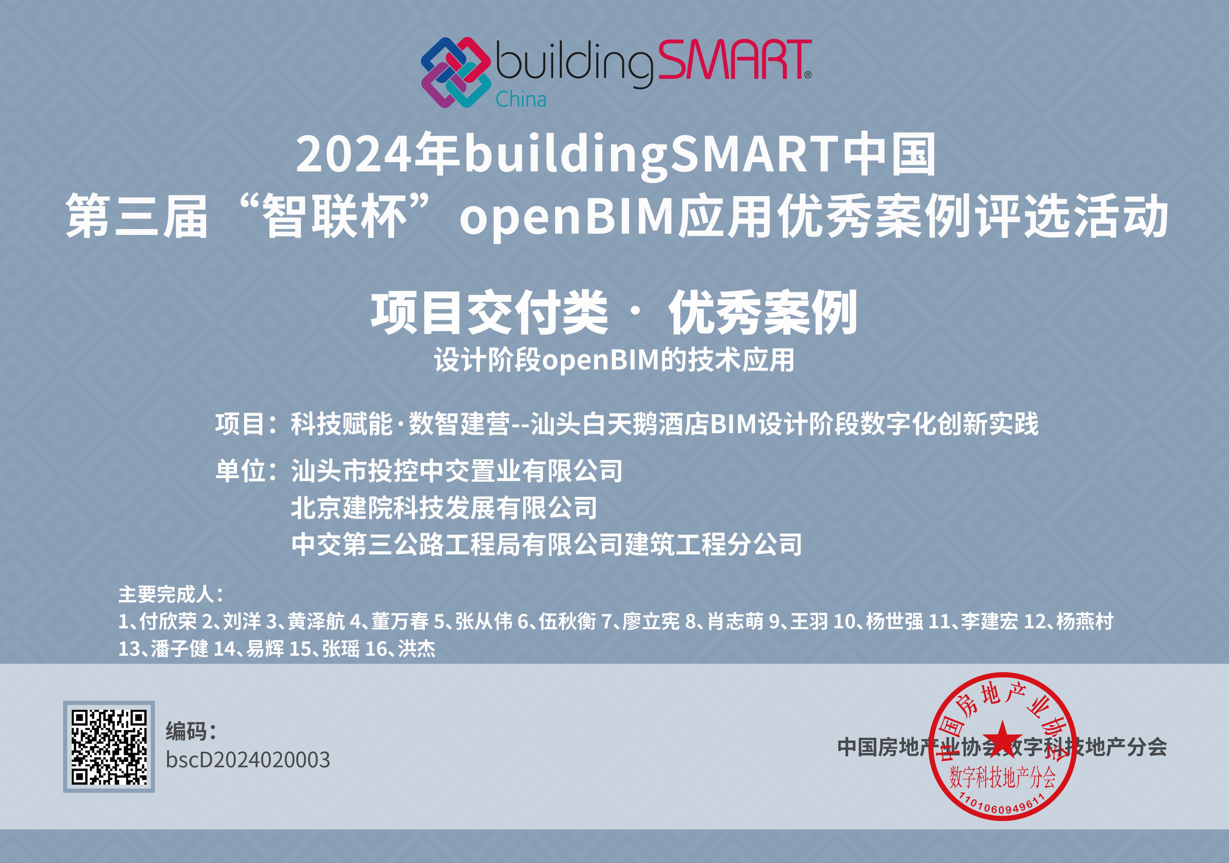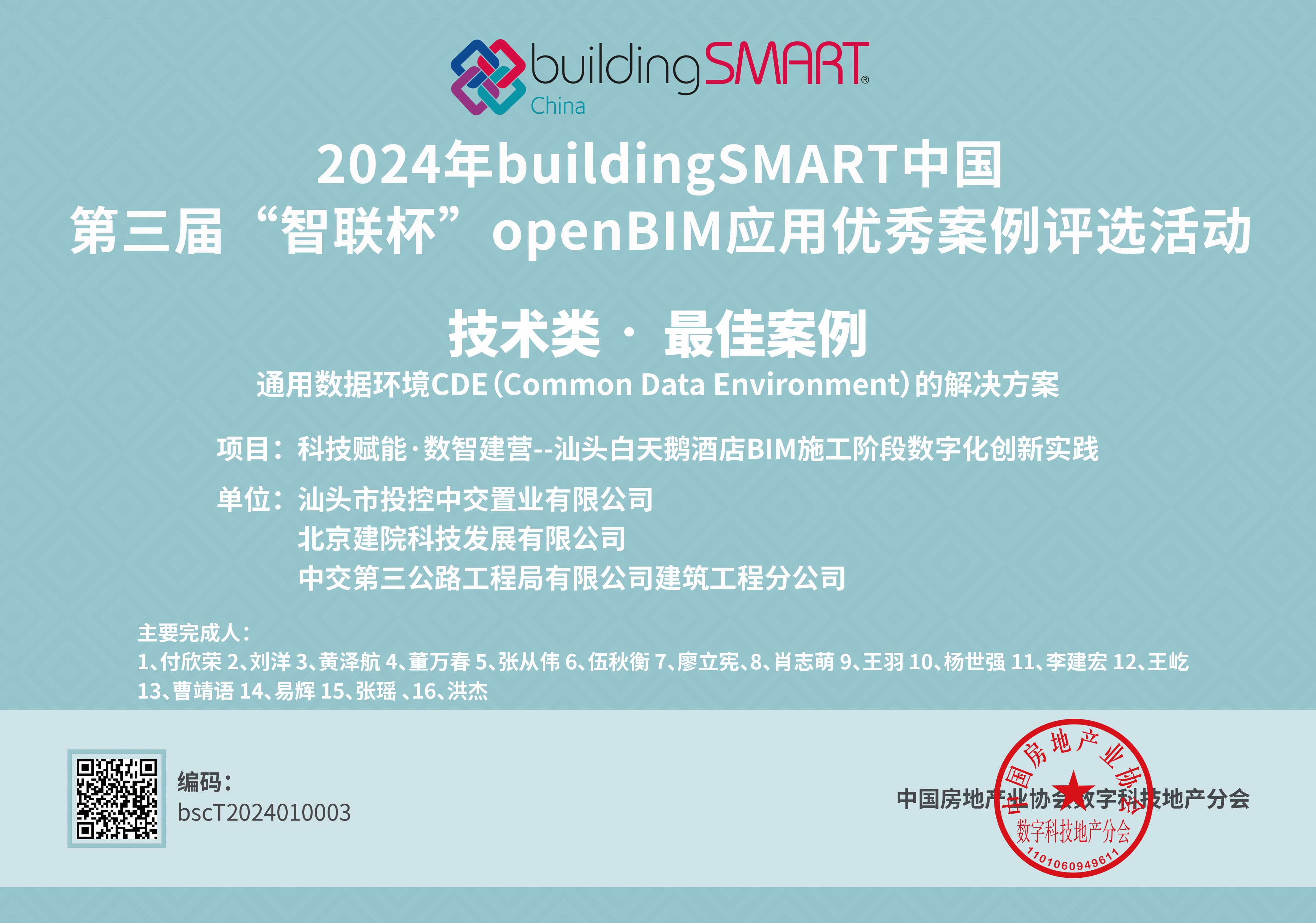 本屆“智聯(lián)杯”共18家企業(yè)在openBIM應用優(yōu)秀案例評選活動中獲得獎項,其中北京建院科技發(fā)展公司的汕頭白天鵝酒店項目獲得設計階段openBIM項目交付類優(yōu)秀案例獎和施工階段的技術類最佳案例獎。