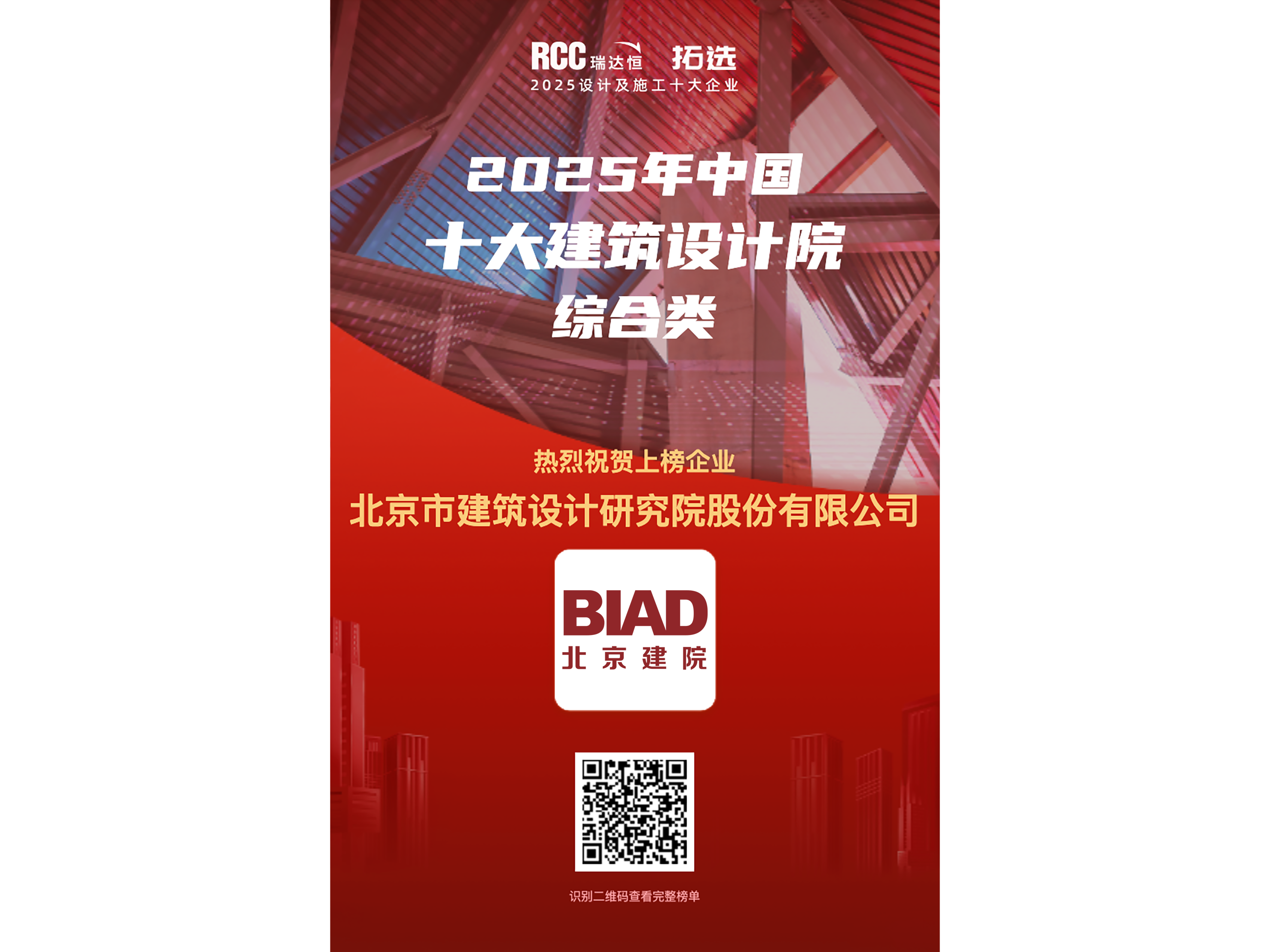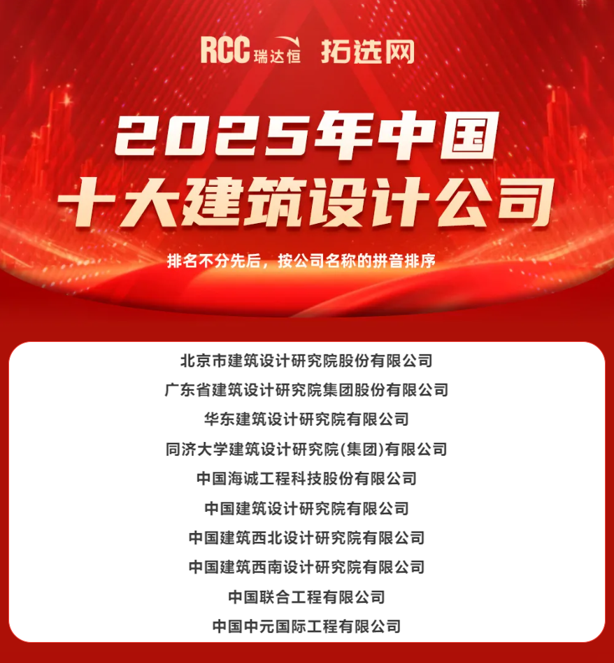 2025年建筑行業(yè)十大建筑設計公司榜單權威發(fā)布,該活動由知名建筑行業(yè)咨詢公司RCC瑞達恒主辦,已連續(xù)舉辦15年。