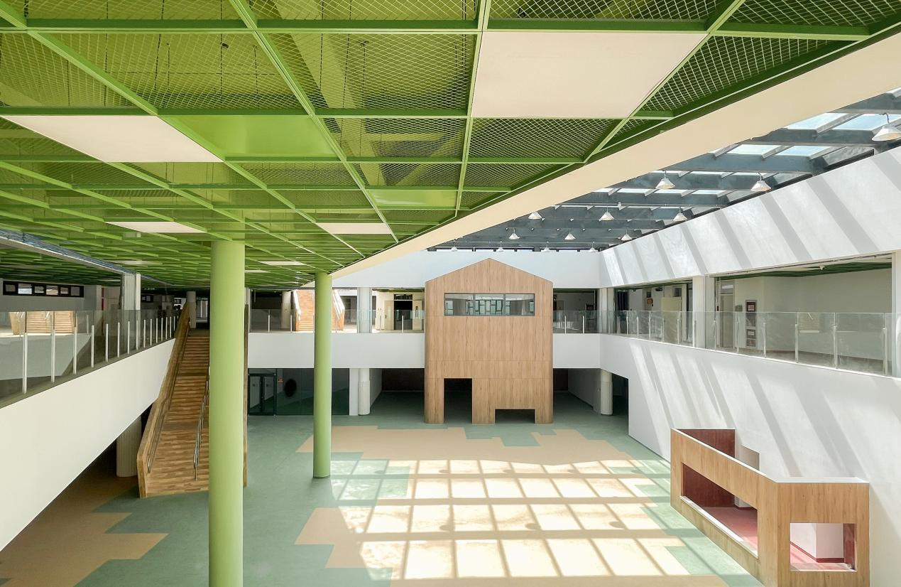 中央游戲大廳支持快速切換教學(xué)、游戲活動場景,各開放教學(xué)空間可以根據(jù)教學(xué)需求完成功能轉(zhuǎn)換,滿足幼兒園的教學(xué)理念;屋頂露臺方便孩子們戶外活動,落地玻璃窗實現(xiàn)室內(nèi)外視覺連通,便于老師監(jiān)護(hù)與自然教育滲透。豐富的建筑空間滿足孩子們在這里探索、學(xué)習(xí)和生活。