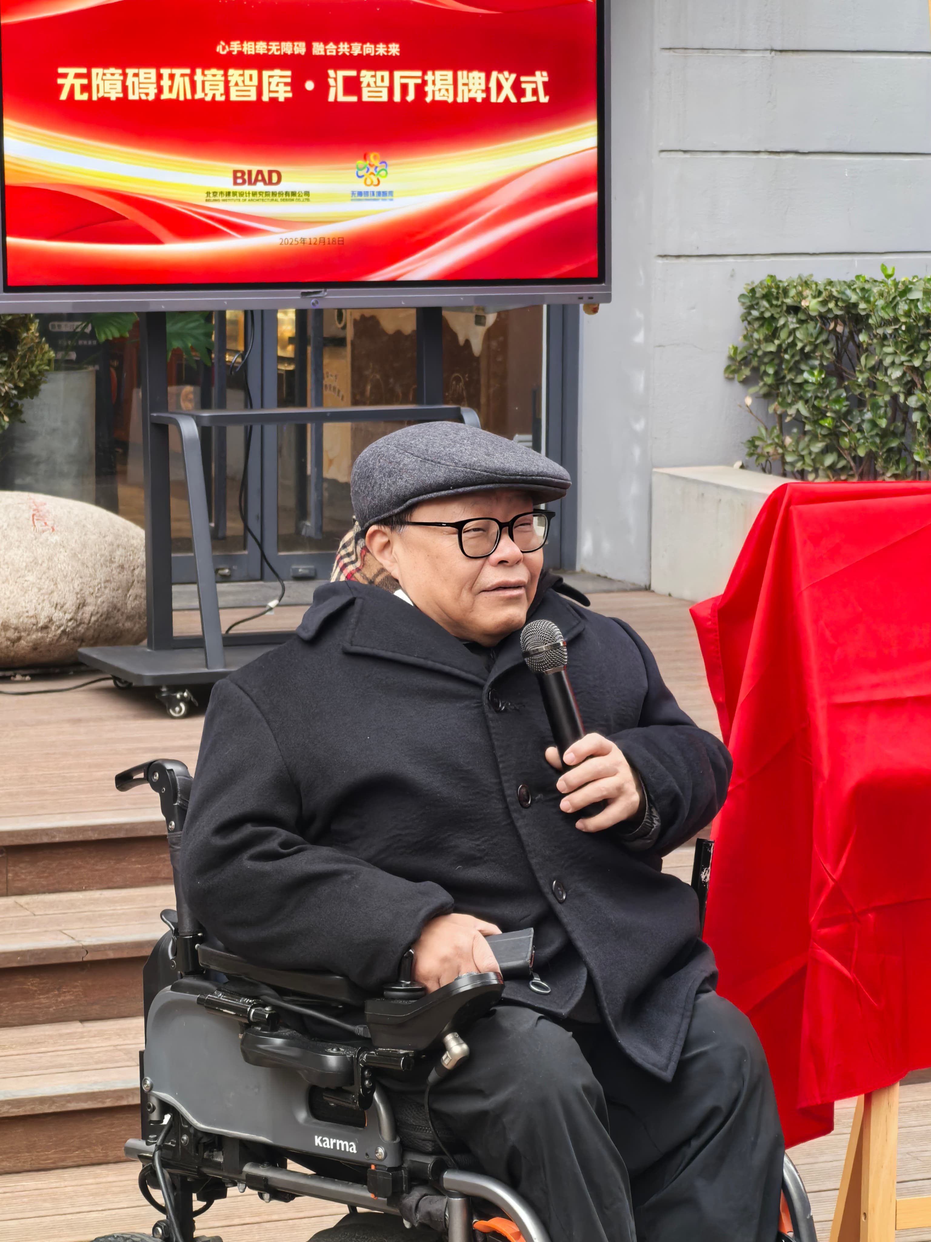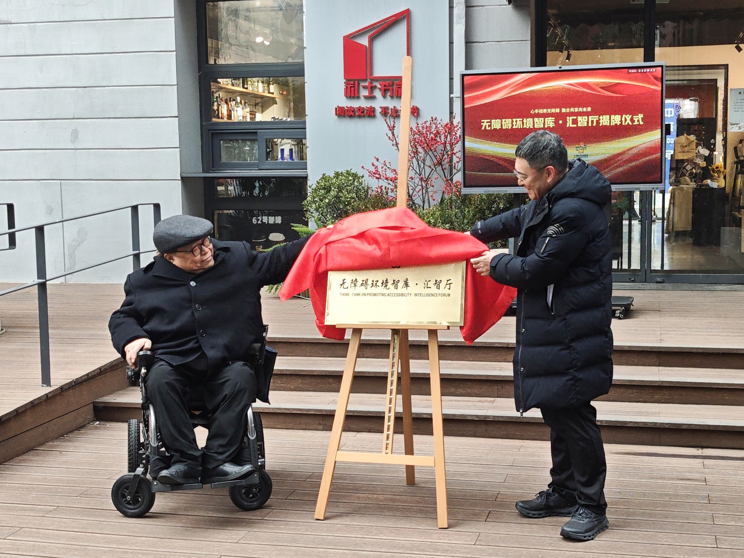 在與會嘉賓的共同見證下,呂世明和徐全勝共同為“無障礙環(huán)境智庫·匯智廳”揭牌,標志著全國首個無障礙環(huán)境建設專業(yè)智庫與實體交流平臺正式啟用。
