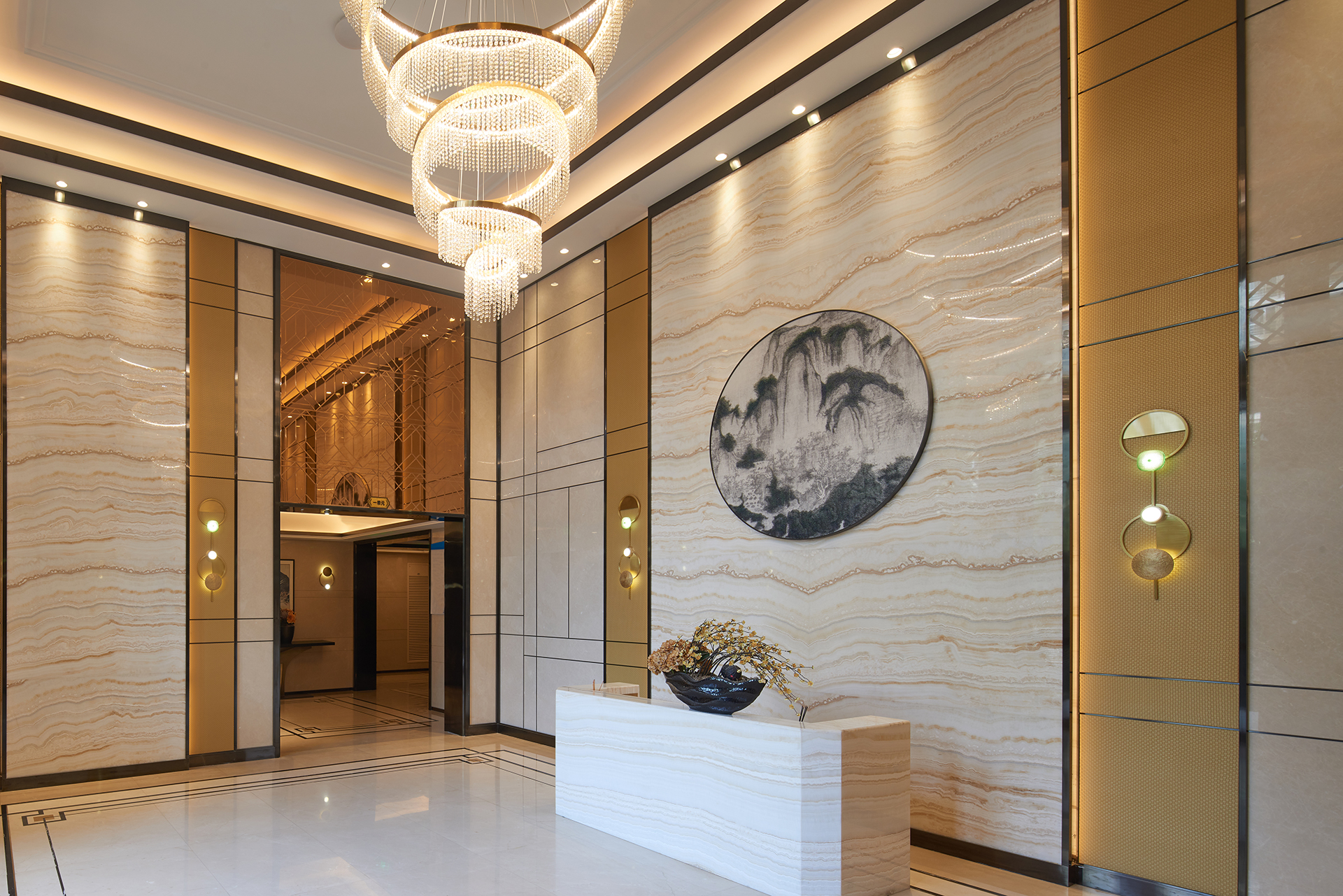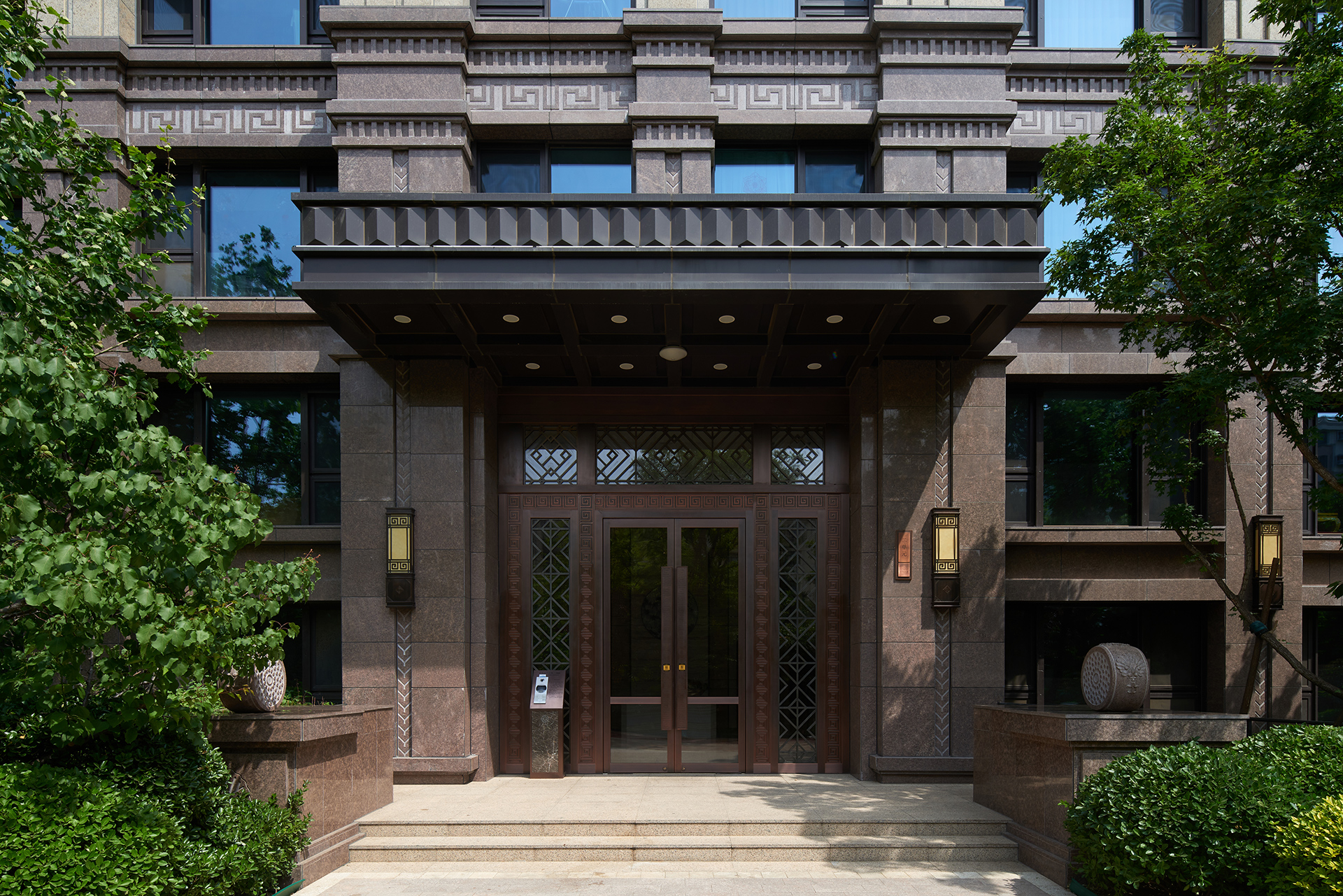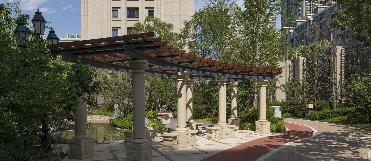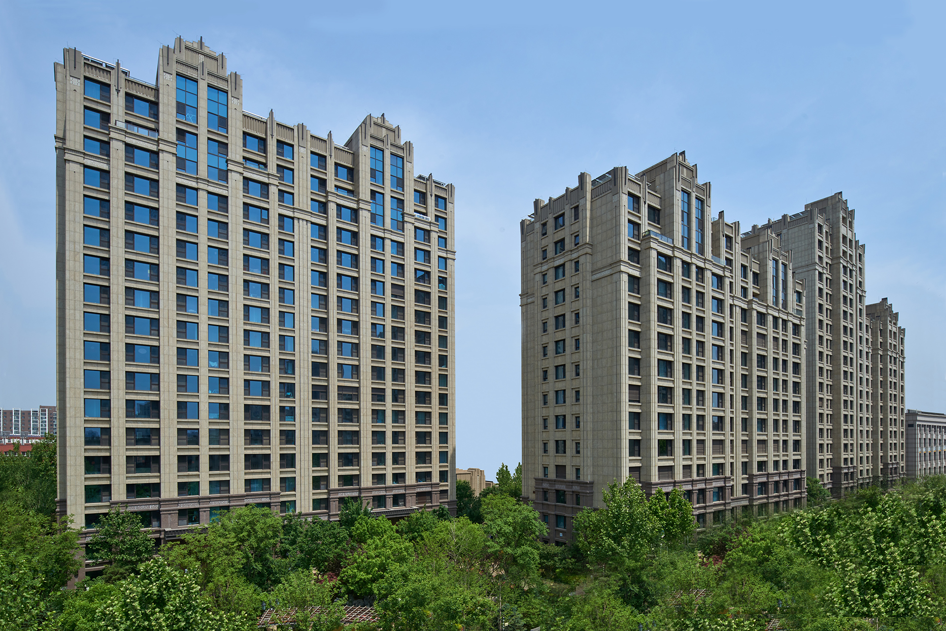 本項(xiàng)目位于朝陽區(qū)望京地區(qū),北臨南湖北一街,東至南湖南路,南至金隅麗港城,西至首開知語城小區(qū)C1#C2#樓,南湖北街北側(cè)相鄰為星海明珠小區(qū)及南湖中園小學(xué)。用地東西長約210m,南北長約65m。項(xiàng)目內(nèi)共計(jì)四棟樓,三棟住宅,一棟配套公建。住宅樓居于場地內(nèi)部,配套公建位于地塊東北角沿街角布置。社區(qū)主要人行出入口位于場地北側(cè),東側(cè)開設(shè)次入口,配套公建沿街開放。社區(qū)機(jī)動(dòng)車出入口兩個(gè),分別位于場地北側(cè)主入口附近和東側(cè)配套公建西側(cè),內(nèi)部交通組織為人車分流,機(jī)動(dòng)車直接進(jìn)入地下車庫,內(nèi)部道路僅為消防環(huán)路,在地下通過電梯直接入戶,三棟住宅樓均有挑空單元大堂。本項(xiàng)目難點(diǎn)在于場地南北進(jìn)深較小,周邊均為已建成現(xiàn)狀,對場地內(nèi)的限制條件較多。在條件較為苛刻的情況下,設(shè)計(jì)重點(diǎn)難點(diǎn)既要保證戶型的品質(zhì),同時(shí)應(yīng)滿足消防日照等規(guī)定要求。在樓棟排布及戶型設(shè)計(jì)上進(jìn)行了精細(xì)化設(shè)計(jì),合理的設(shè)置層高,最大化利用可建設(shè)高度,局部采用退臺(tái)的手法。外立面采用簡潔的新古典風(fēng)格,淺米色調(diào),更能符合高品質(zhì)的定位,與周邊區(qū)域相協(xié)調(diào)。周邊三段式劃分削弱了建筑的體量感,精致的石材線腳和適宜的開窗比例增強(qiáng)了尺度感。運(yùn)用色彩變化演繹門頭裝飾,精致的銘牌、門環(huán)、壁燈以及門前金屬雕塑,柱子的流線、門墻頂飾等細(xì)節(jié)利用不同材料或裝飾紋樣進(jìn)行多樣性演變。小區(qū)入口、住宅單元入口重點(diǎn)處理,烘托加強(qiáng)儀式感、尊貴感。在景觀設(shè)計(jì)中,C03#、C04#樓圍合出集中綠地,在有限的用地內(nèi)盡可能提供更多的景觀資源,注重營造具有心靈歸屬感的社區(qū)環(huán)境,以具有豐富文化底蘊(yùn)的山水庭院為藍(lán)本,圍繞"水色·自然"的環(huán)境主題,構(gòu)筑輕松、自然、休閑、健康生活方式的理想住區(qū)。國風(fēng)尚樾項(xiàng)目以智能家居及智慧社區(qū)方案為亮點(diǎn)。智慧家居控制系統(tǒng)包含窗簾控制系統(tǒng)、外卷簾控制系統(tǒng)、溫度控制系統(tǒng)、空氣質(zhì)量管理系統(tǒng)、太陽能熱水控制系統(tǒng)、能源監(jiān)控系統(tǒng)、場景切換系統(tǒng)、六道安防系統(tǒng)、可視對講系統(tǒng)等。