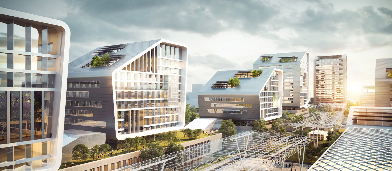 本項目為大同經(jīng)濟建設(shè)投資有限公司在大同投資的科技創(chuàng)新產(chǎn)業(yè)園,整體建筑面積約38萬平米。本項目為大同市能源轉(zhuǎn)型、發(fā)展新能源的建設(shè)背景下,大同市政府引進全科盟、中科院等科研單位進駐大同,并聯(lián)合同煤研究院、泰瑞新材料公司,打造大同新的經(jīng)濟發(fā)展增長點和能源革命的催化劑。本項目的建設(shè)和投產(chǎn),將顯著的增強大同市在新能源、新技術(shù)、新工藝等方面的研發(fā)能力。整體建筑設(shè)計從規(guī)劃入手,分析場地的風(fēng)環(huán)境和日照環(huán)境,創(chuàng)造適宜的場地風(fēng)環(huán)境,并充分利用大同優(yōu)異的日照條件,在建筑設(shè)計中最大化利用太陽能這一清潔能源,并與場地內(nèi)的能源系統(tǒng)連接,盡可能達到能源自用的最高效率。場地設(shè)計方面,考慮海綿城市的設(shè)計,達到雨水零排放??梢灶A(yù)見,隨著科研成果的不斷涌現(xiàn)及產(chǎn)業(yè)化,必將推動大同市乃至山西全省由“制造”向“智造”的升級邁進。