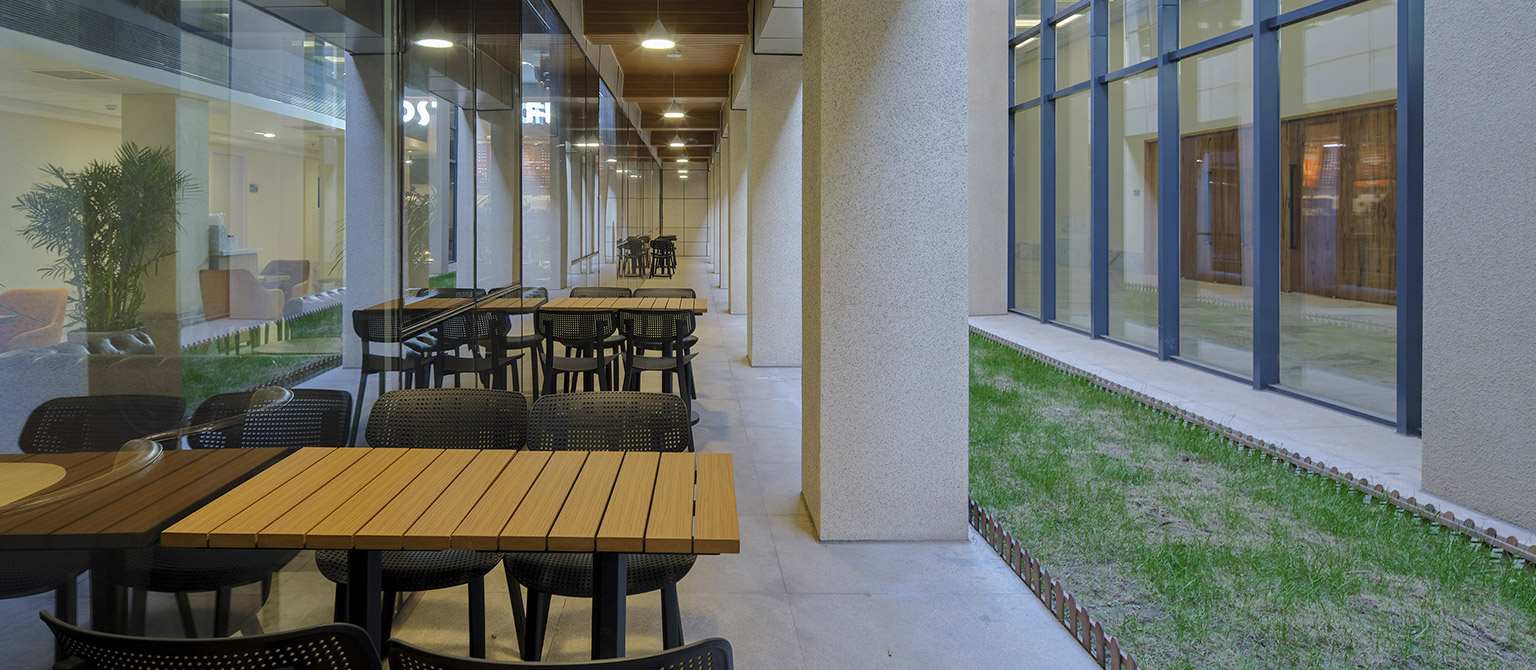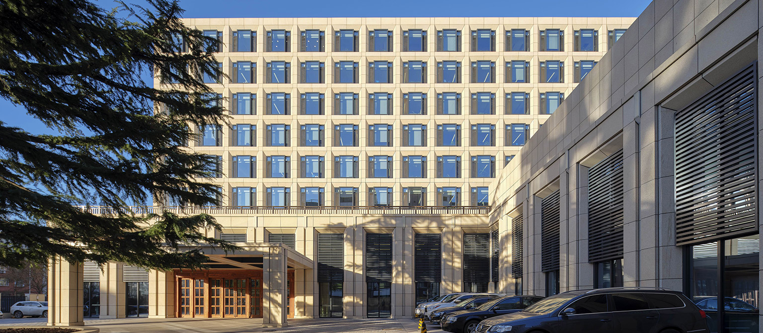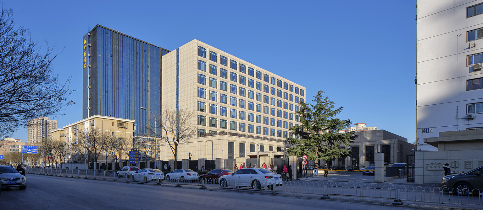 1)拆除重建多功能廳,設(shè)置地下室作為消防水池和泵房等設(shè)備用房;2)主樓南側(cè)新建兩層通高度裙房,與主樓脫開兩個內(nèi)天井,作為人員休息場所。3)注重光影效果,大堂區(qū)域采用兩層通高的落地玻璃幕墻,塑造了明亮通透的室內(nèi)空間形象。4)對樓電梯、核心筒進行改造,更好的適應(yīng)使用功能的需求,并滿足現(xiàn)行規(guī)范的要求。
