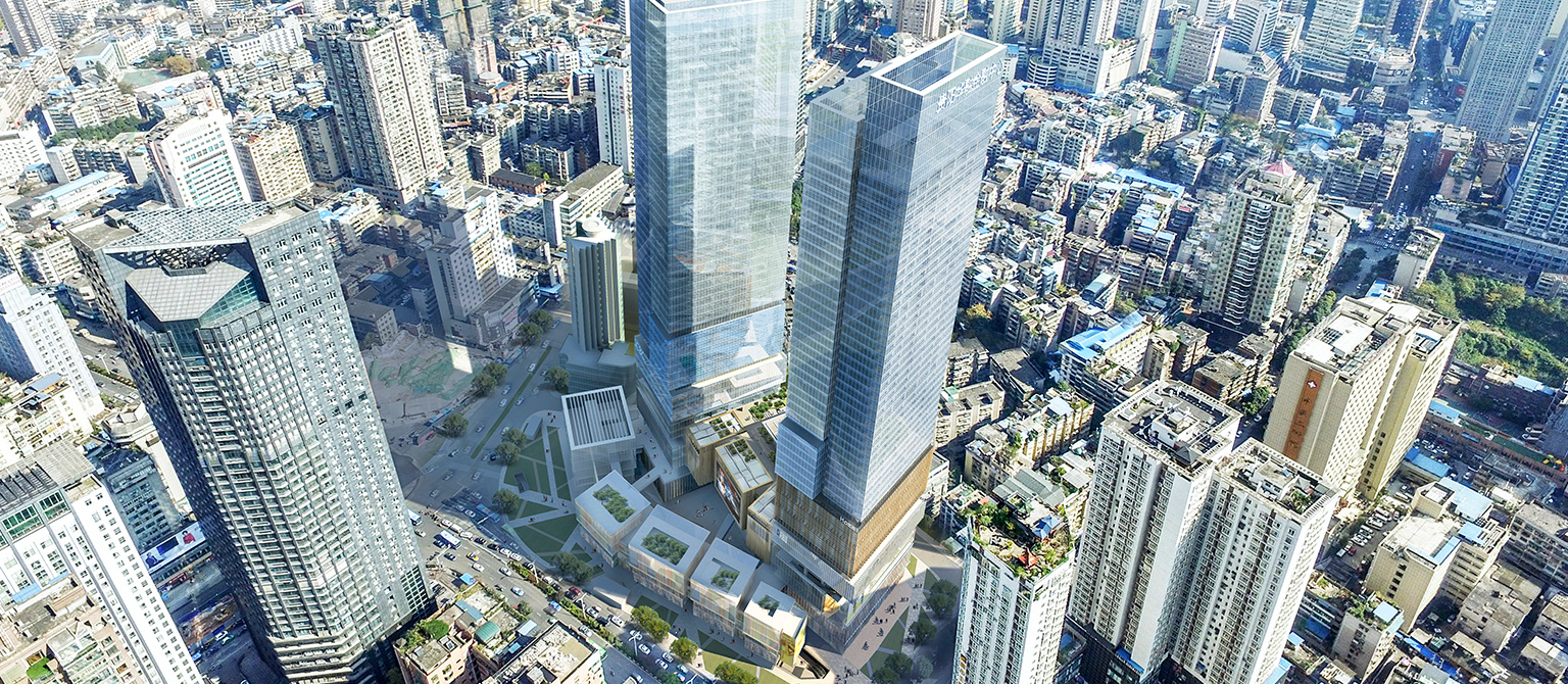 貴陽華融金融中心位于貴陽城市核心區(qū)紫林庵片區(qū)。建筑方案和初步設(shè)計由Aedas完成,我院負責結(jié)構(gòu)方案和初步設(shè)計并完成超限審查。