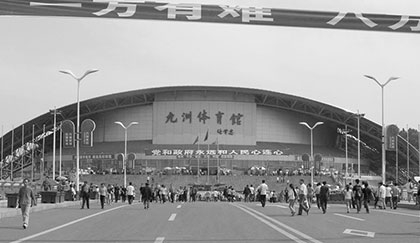 2008年5月12日中國(guó)汶川發(fā)生特大地震,無(wú)數(shù)建筑倒塌,滿目瘡痍,幾十萬(wàn)人無(wú)家可歸。位于四川省綿陽(yáng)市的九洲體院館在大震中屹立不倒,成為了受災(zāi)群眾的臨時(shí)安置場(chǎng)所
