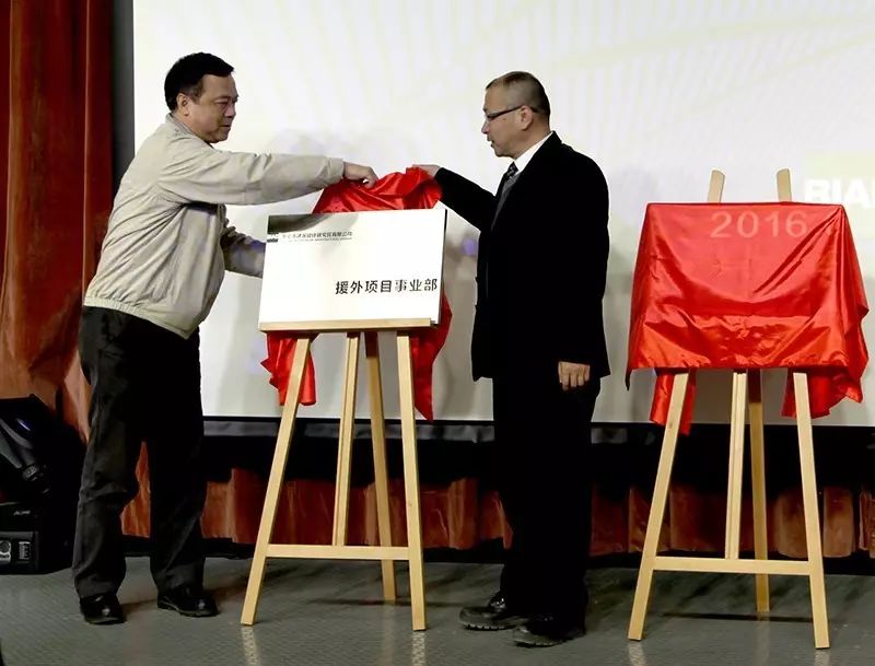 2016年1月BIAD副總經(jīng)理陳杰(左)為援外項(xiàng)目事業(yè)部主任張子軍授牌