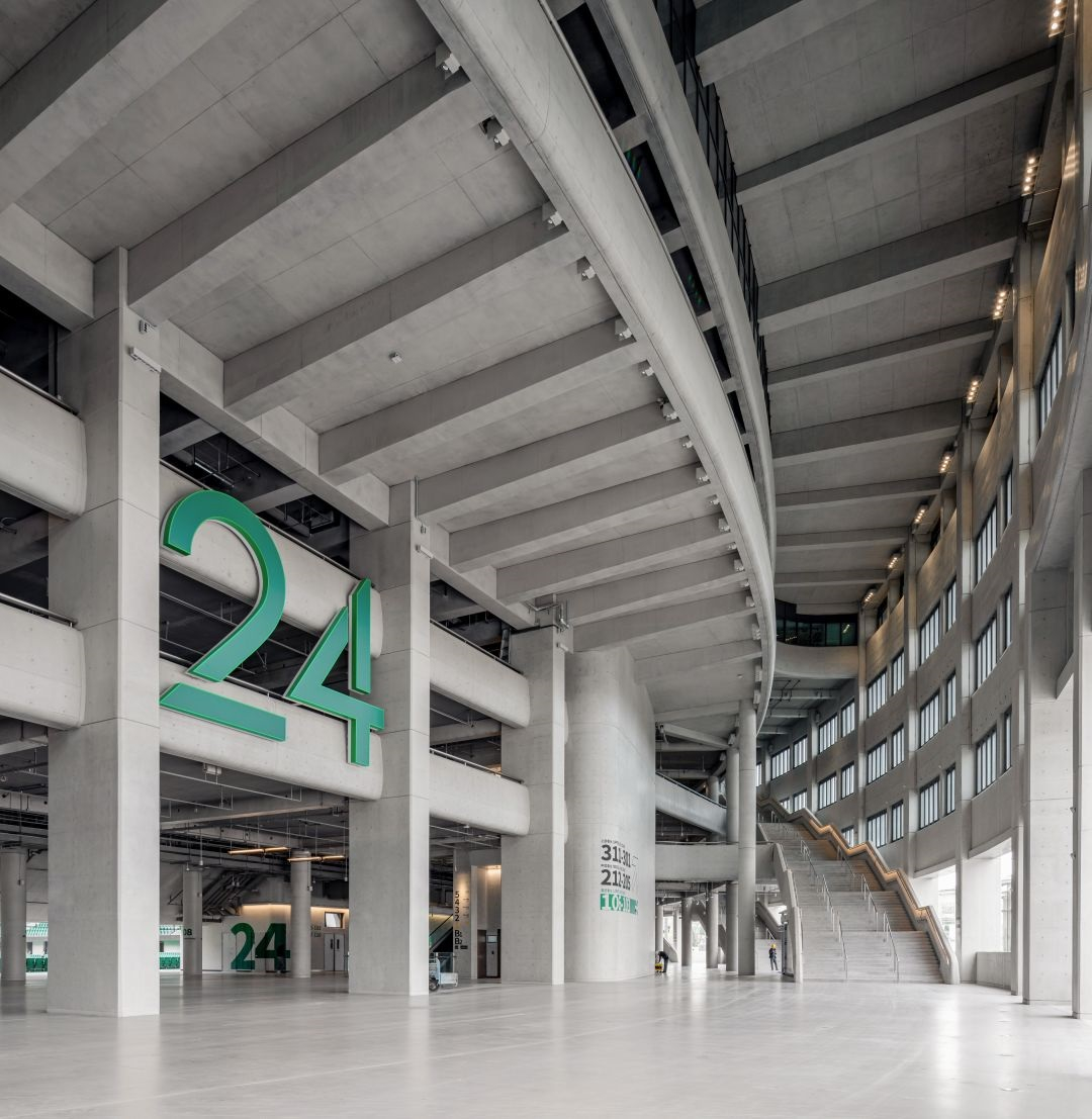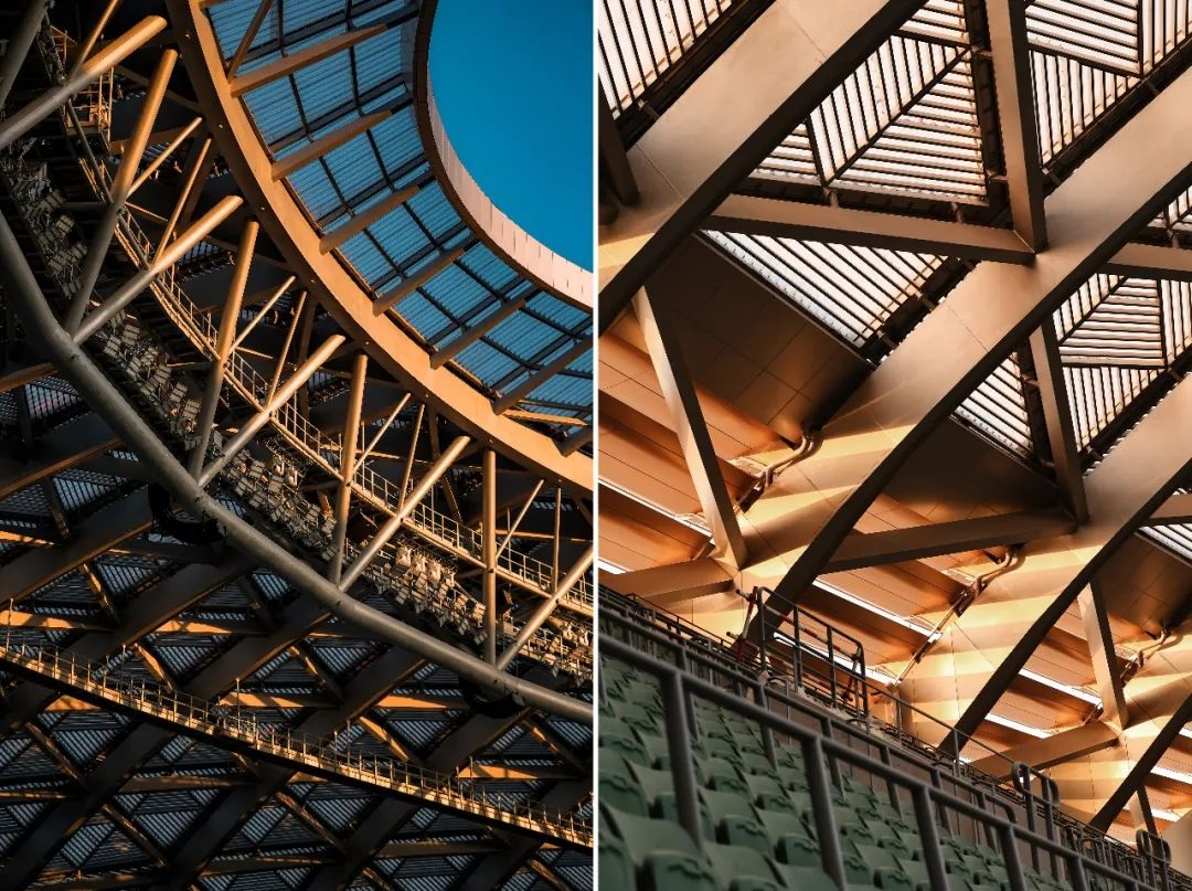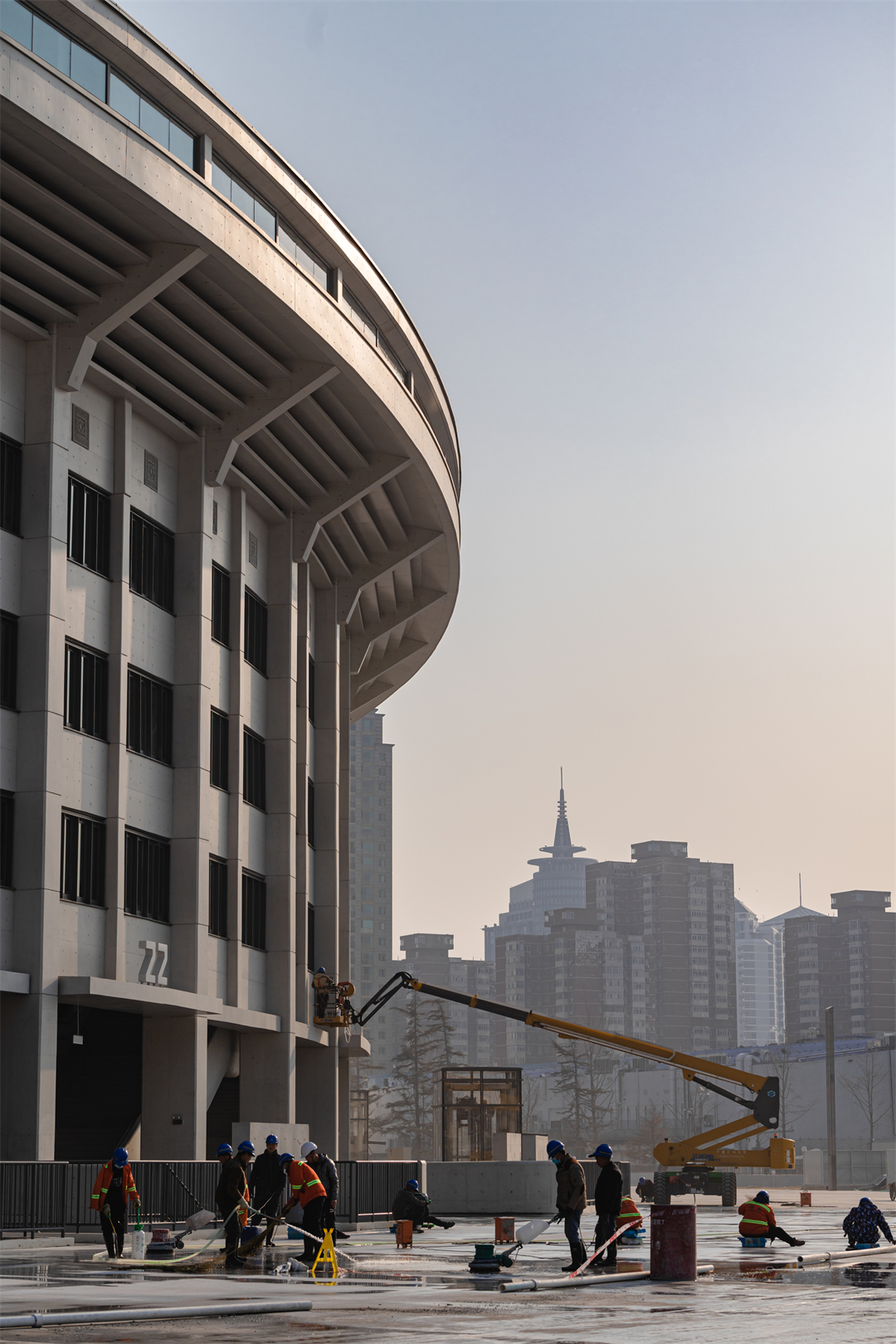 傳統(tǒng)外觀體首先體現(xiàn)在總體規(guī)劃方面,完全建成的新工體將恢復(fù)1959年建成時(shí)疏朗的城市空間形態(tài)。新增大面積綠化空間和提升整治后的南部水體空間為市民提供高標(biāo)準(zhǔn)的體育活動(dòng)、休憩娛樂的優(yōu)質(zhì)室外環(huán)境;為城市提供新的體育、文化、商業(yè)綜合空間,打造大三里屯商業(yè)圈,搭建國際體育文化科技交流平臺(tái)。從建筑單體角度看,新工體不是原封不動(dòng)的照搬老工體的樣式,而是在形似的基調(diào)下,通過新理念、新材料、新技術(shù)、新功能賦予工體嶄新的持久生命力。清水混凝土工藝的使用,完美呼應(yīng)了老工體水泥砂漿外觀飾面層簡約、質(zhì)樸的調(diào)性,而清水混凝土材料本身的紋路、質(zhì)感、色彩和實(shí)施工藝帶來全新的視覺效果,于平實(shí)處盡顯力度美和精致的細(xì)節(jié)。