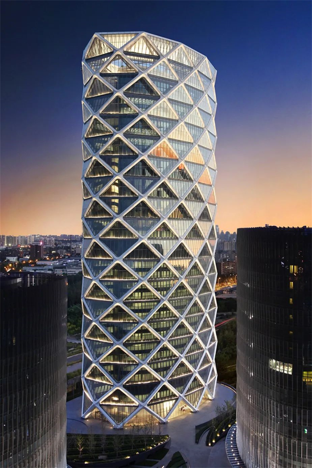 (3)創(chuàng)新結(jié)構(gòu)體系:提出了高強(qiáng)混凝土高層建筑結(jié)構(gòu)體系與設(shè)計(jì)方法,研發(fā)了高性能框架結(jié)構(gòu)體系與設(shè)計(jì)方法,建立了斜交網(wǎng)格混合結(jié)構(gòu)體系設(shè)計(jì)方法,克服了制約復(fù)雜高層建筑結(jié)構(gòu)功能多樣化的技術(shù)障礙。