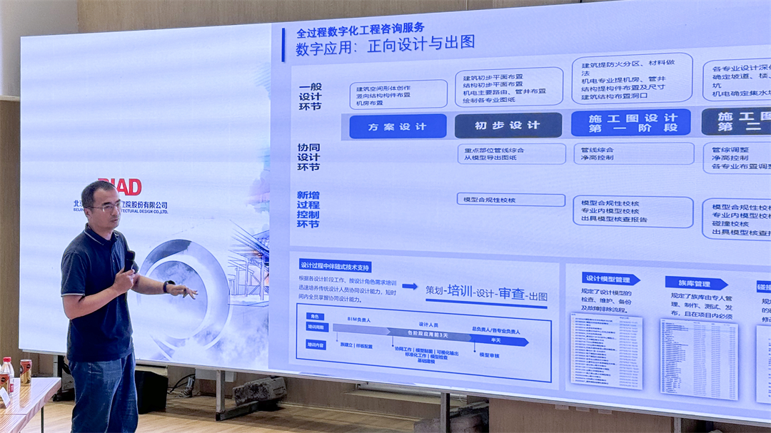信息部副部長梁楠以《北京建院BIM正向設(shè)計助力建筑設(shè)計提效》為題,介紹了北京建院在BIM正向設(shè)計方面的應(yīng)用探索和成功案例,并從組織機構(gòu)、標(biāo)準(zhǔn)及體系設(shè)置等方面闡述了北京建院為推動數(shù)字化轉(zhuǎn)型和形成行業(yè)領(lǐng)軍優(yōu)勢,作出的頂層設(shè)計及落地實施策略。