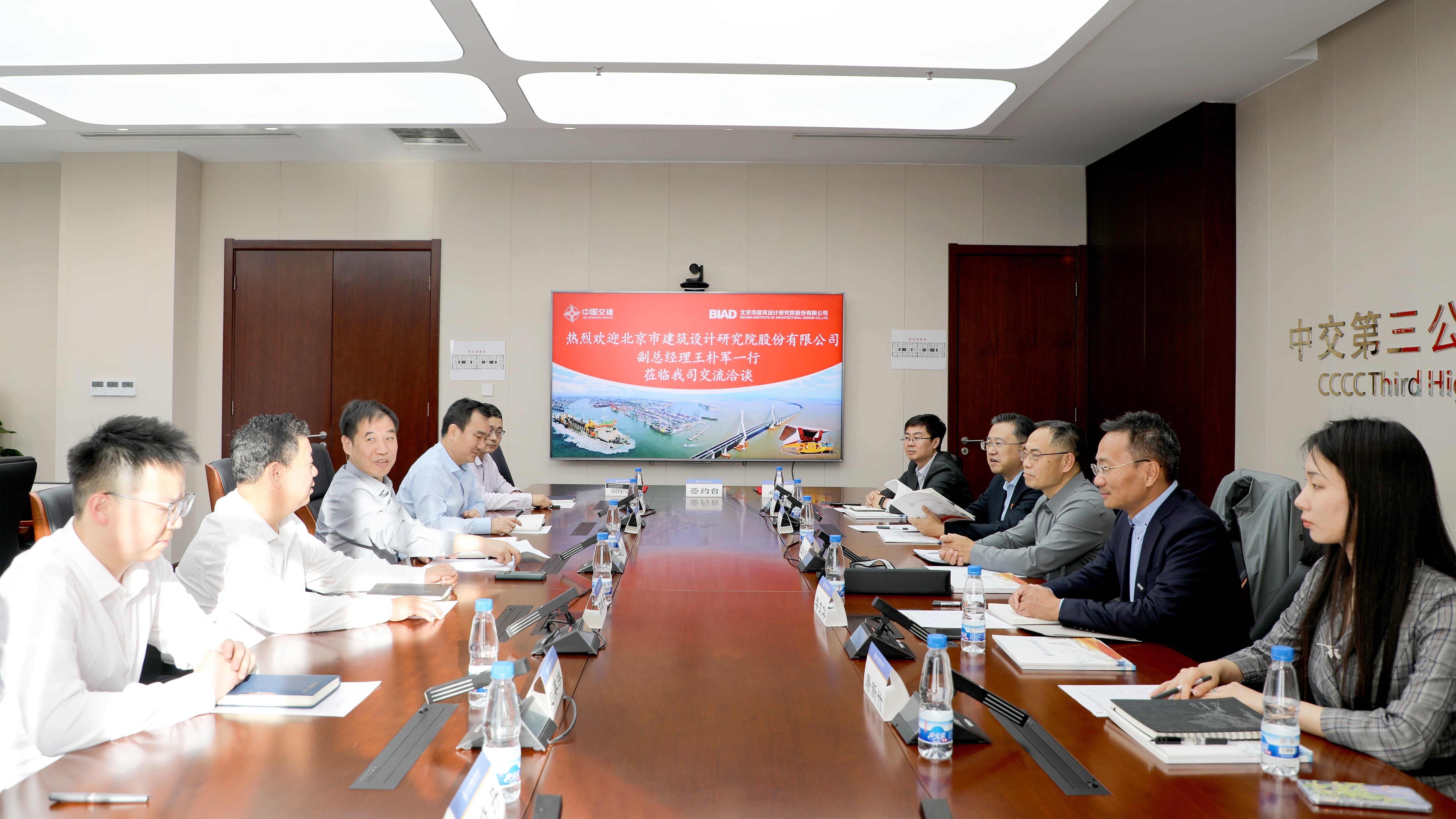 雙方就行業(yè)現(xiàn)狀、海外市場(chǎng)、各方優(yōu)勢(shì)、合作計(jì)劃等方面深入探討交流。中交三公局國(guó)際工程分公司副總經(jīng)理、總工程師高曉宇主持會(huì)議。
