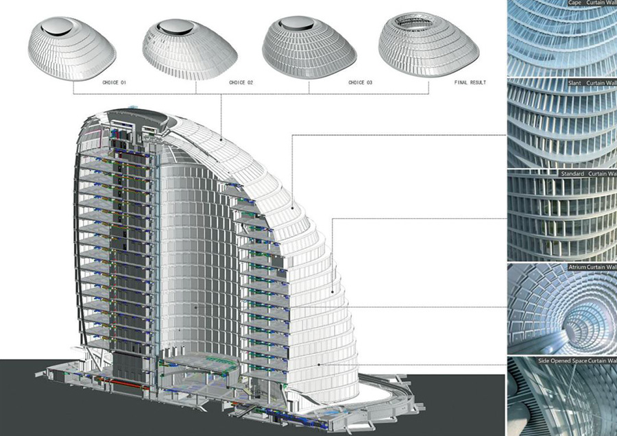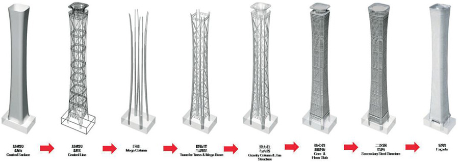 中信大廈項(xiàng)目總建筑面積為43.7萬(wàn)平方米,是北京新時(shí)代的標(biāo)志。建筑造型靈感來(lái)源于中國(guó)傳統(tǒng)禮器"尊",具有收腰的造型構(gòu)成了它的獨(dú)特性。針對(duì)Z15的特點(diǎn)利用數(shù)字工具建立多專業(yè)、多部門協(xié)同工作的建筑信息平臺(tái),高效、準(zhǔn)確、科學(xué)地解決實(shí)際工程中的技術(shù)難題,達(dá)到建筑整體性能的協(xié)調(diào)統(tǒng)一。