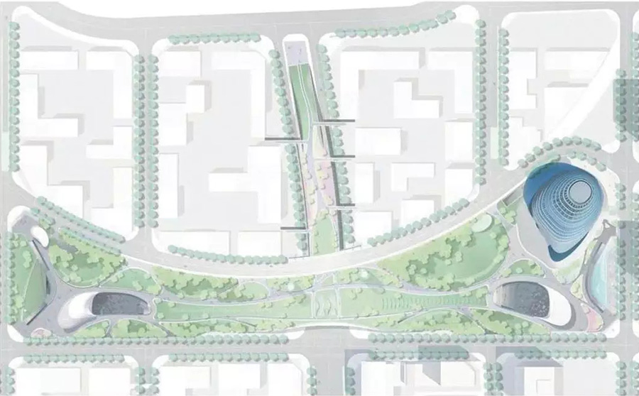 城奧大廈項(xiàng)目地塊與正在建設(shè)的2022 年冬奧村緊臨,也是奧南商務(wù)園的點(diǎn)睛之筆,方案創(chuàng)意取自于花樣滑冰的運(yùn)動(dòng)軌跡,通過(guò)層層流動(dòng)的滑動(dòng)軌跡生成建筑形象,呼應(yīng)了冬奧會(huì)運(yùn)動(dòng)主題,與中央綠地自由流動(dòng)曲線融為一體。