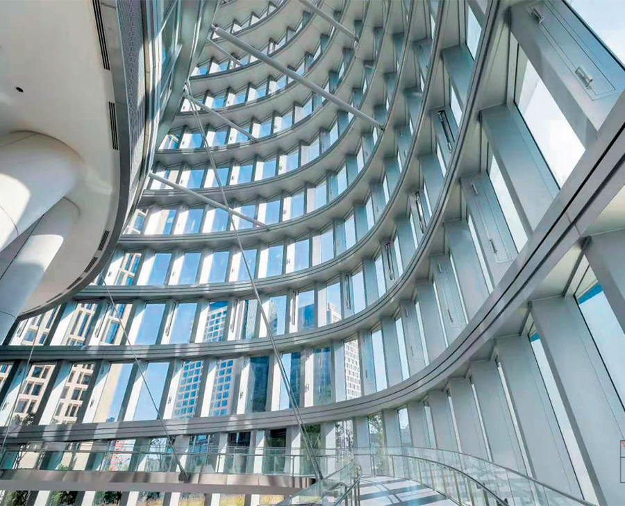 內(nèi)外幕墻均通過(guò)設(shè)計(jì)手法,諸如鋸齒幕墻、蓑衣幕墻等方式,通過(guò)錯(cuò)位和折疊來(lái)消化誤差,提升施工精度同時(shí)也提升了建筑表現(xiàn)力 。