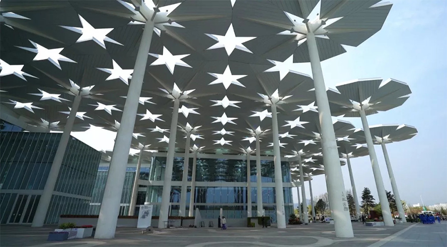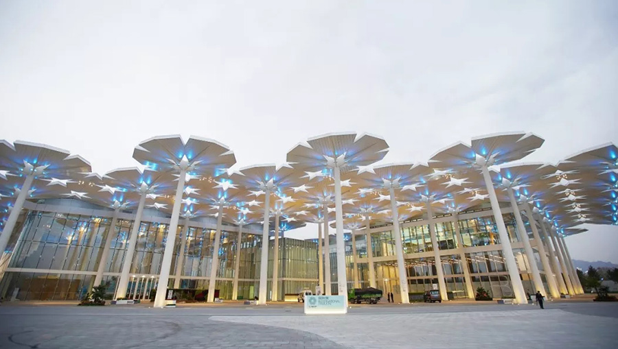 2019年北京世園會國際館由全國工程勘察設計大師、北京市建筑設計研究院股份有限公司總建筑師胡越領銜設計,以“花傘”為元素、“花?!睘橹黝}、“長城灰”為色調,秉承“以人為本”、“綠色節(jié)能”、“可持續(xù)發(fā)展”的設計理念,打造出一座與周邊環(huán)境和諧共生,既滿足展會需求、又滿足會后使用的國際館。