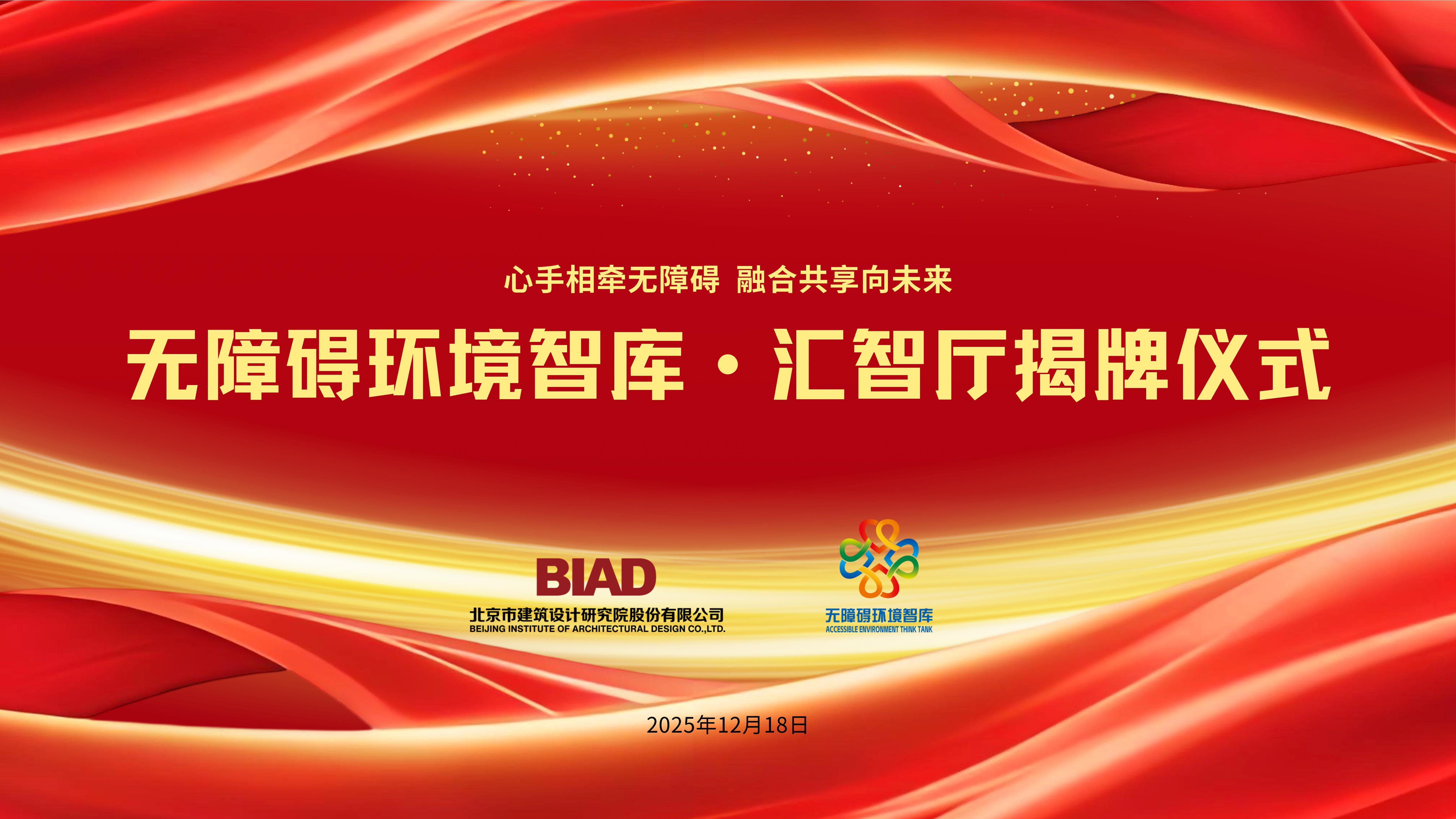 2025年12月18日下午,“無障礙環(huán)境智庫·匯智廳”揭牌活動在北京市建筑設計研究院股份有限公司禮士書房舉行?!皡R智廳”由中國助殘志愿者協(xié)會發(fā)起、北京建院承辦,目標是聯(lián)合打造無障礙環(huán)境建設的專業(yè)智庫與交流平臺,匯聚行業(yè)智慧,推動無障礙環(huán)境建設高質量發(fā)展。