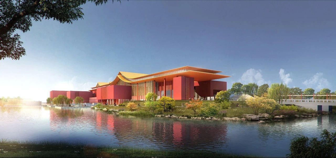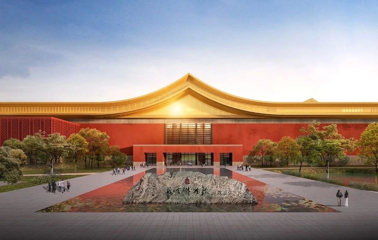 從效果圖上看,南側(cè)臨水、北面疊山的故宮博物院北院區(qū),在建筑上就很有傳統(tǒng)文化風韻,灰色外城、紅色內(nèi)墻和金色的重檐,讓人一眼就能聯(lián)想到故宮,東西向的軸線設(shè)計也充滿了秩序感。