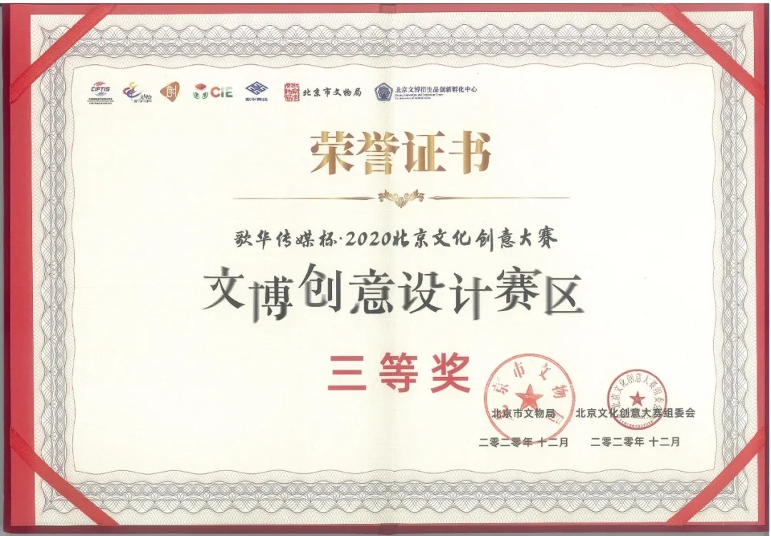 北京建院準(zhǔn)工方+AC團隊參加了本次大賽,參賽作品先后經(jīng)歷了“文博創(chuàng)意設(shè)計賽區(qū)-中軸線賽道”初賽、復(fù)賽路演、半決賽路演,取得了“中軸線賽道二等獎”,同時被選送進入于2020年12月26日進行的“文博創(chuàng)意設(shè)計賽區(qū)”總決賽,與老字號企業(yè)、各大博物館、各大院校、傳統(tǒng)手工藝品牌、設(shè)計公司、文旅公司、科創(chuàng)團隊等單位的成果同臺競技,最終榮獲“文博創(chuàng)意設(shè)計賽區(qū)總決賽三等獎”。